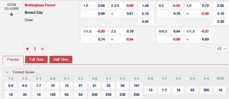 Soi kèo Nottingham vs Bristol City 02h45 ngày 08/02/2024